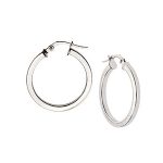 These contemporary 9 carat white gold round hoop earrings are beautifully made of polished square tubes with four flat edges to create a timeless classic that will never date.
