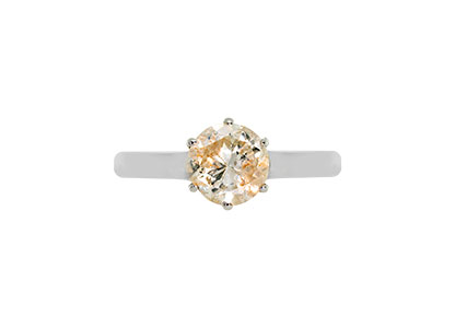 Set in a six claw 9ct white gold plain polished ring mount.