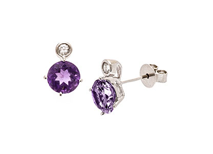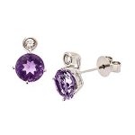 These dazzling desirable 9ct white gold stud earrings are elegant and lovingly crafted. Claw set with a beautiful rich purple amethyst, crowned in a rub over setting with a single round white brilliant cut sparkling cubic zirconia. These beautiful earrings will make a great addition to your collection.