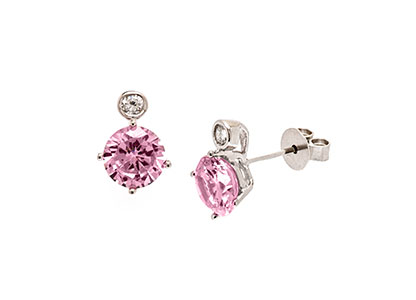 These dazzling desirable 9ct white gold stud earrings are elegant and lovingly crafted. Claw set with a beautiful sparkling 6mm pink cubic zirconia, crowned in a rub over setting with a smaller round white brilliant cut sparkling cubic zirconia. These beautiful earrings will make a great addition to your collection.