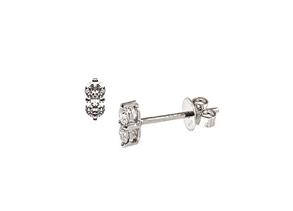 Simply stunning, these beautiful 9ct white gold double diamond stud earrings are elegant and intricately crafted. These two round shaped brilliant cut diamonds are the same size and set very close together to create a look that is elegant and graceful.