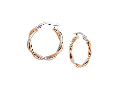 This unusual and pretty combination of 9ct red and white gold twisted hoop tube earrings, are the perfect way to capture admiring glances.