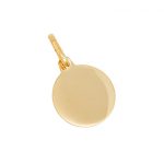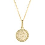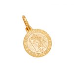 This lovely 9ct yellow gold round Saint Christopher pendant has the words SAINT CHRISTOPHER PROTECT US clearly embossed around the polished border, the centre has a Matt finish and the back is also polished to allow for engraving if required.