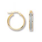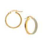 An unusual style loop earrings, fashioned in 9ct polished yellow gold and encrusted to the front with a glittering white rhodium pattern stripe to the centre, adding an instant eye catching sparkle to your look reflecting a brilliant sparkling light and fire in every direction that will ensure you steal the spotlight. I am sure these splendid earrings will become an all time favourite, that you will want to wear as often as possible, taking you from day to night with ease.