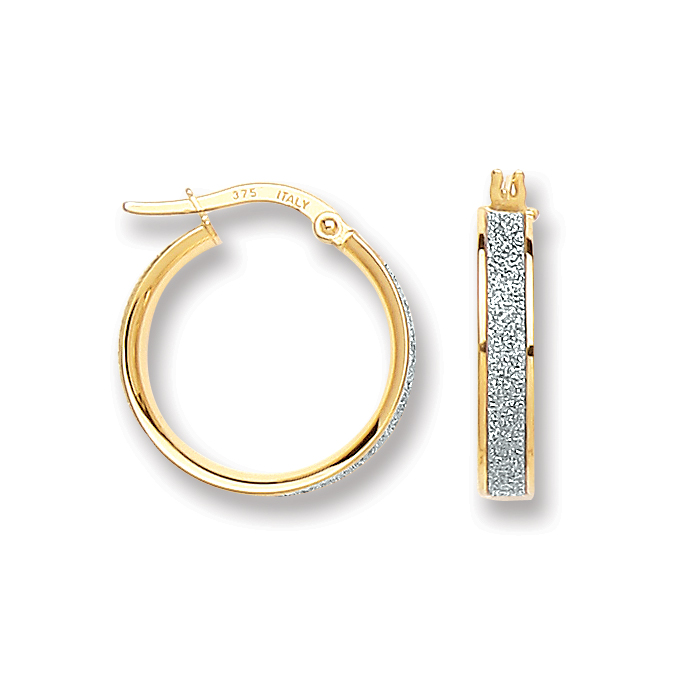 9CT YELLOW GOLD 15MM MOON DUST LOOP EARRINGS EL00078