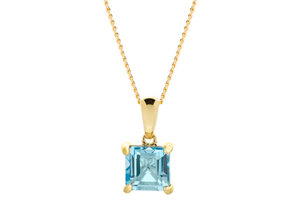 Crafted in 9ct yellow gold, this stylish classic square cool blue topaz pendant is both stylish and versatile, taking you from day to night with ease. Looking great with jeans and trainers, as well as with an elegant evening gown or anything in between. We are sure this pendant will become a much favoured addition to your collection that you will want to wear as often as possible.