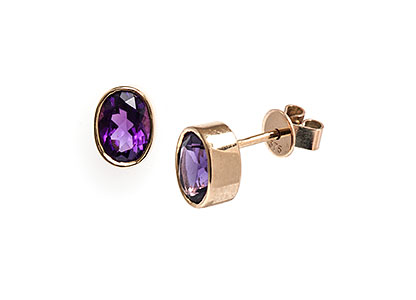 These gorgeous rich purple amethysts, are set into a classic 9ct yellow gold rub over setting, and have a smooth and tactile feel.