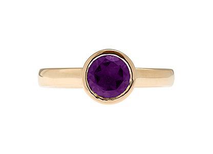 Featuring one 7mm, round, brilliant cut, rich purple amethyst-associated qualities sincerity and peace.