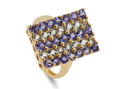 9CT YELLOW GOLD AQUAMARINE & TANZANITE DRESS RING RQ00100