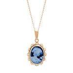 An unusual 9ct yellow gold pendant and 16inch chain, set with a beautiful dark blue and white 16mm x 12mm cameo.