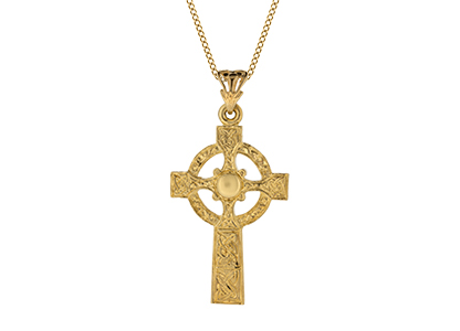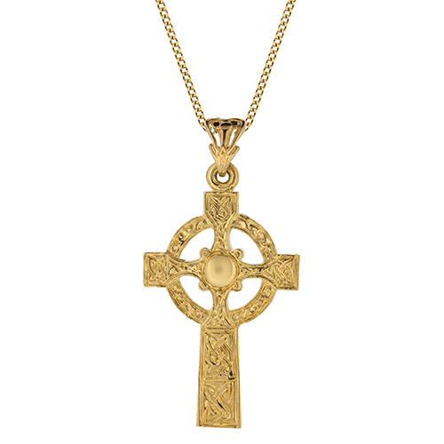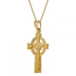 This stunning warrior shield Celtic cross is crafted in 9ct yellow gold. Made to the highest standard, using the finest materials and jewellery making skills to create a unique and personal item to be treasured.