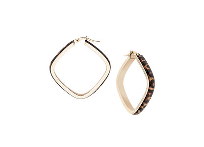 Dramatic and eye catching, these fabulous 9ct gold square loop earrings are enamelled with an unusual wild cheetah pattern. A design inspired by elemental shapes of nature, keeping the world of fashion on its toes with the fastest land animal on earth. This playful sexy pattern evokes the freedom of the wild open savannahs of Africa.