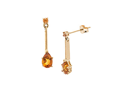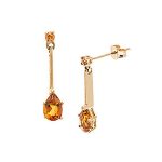 Gracefully suspended from a single round golden citrine stud fitting, is a thin feminine sleek and stylish yellow gold stick design, leading to a beautiful teardrop golden citrine. A creative yet un-complicated style that will add a touch of colour to your outfit and look great, for both day or evening wear.