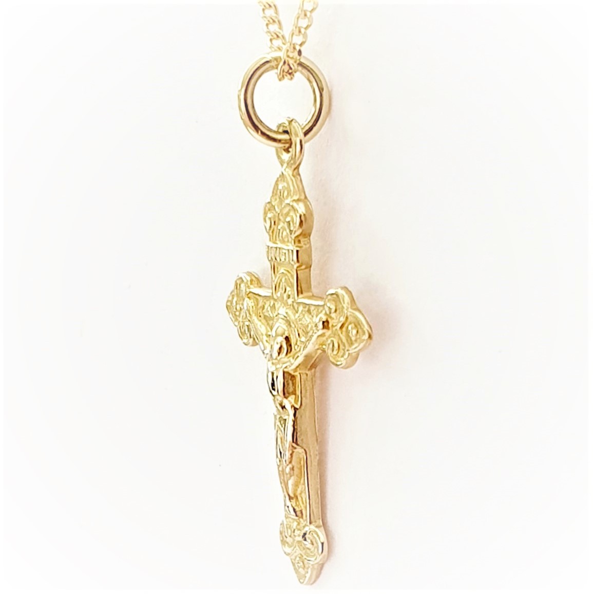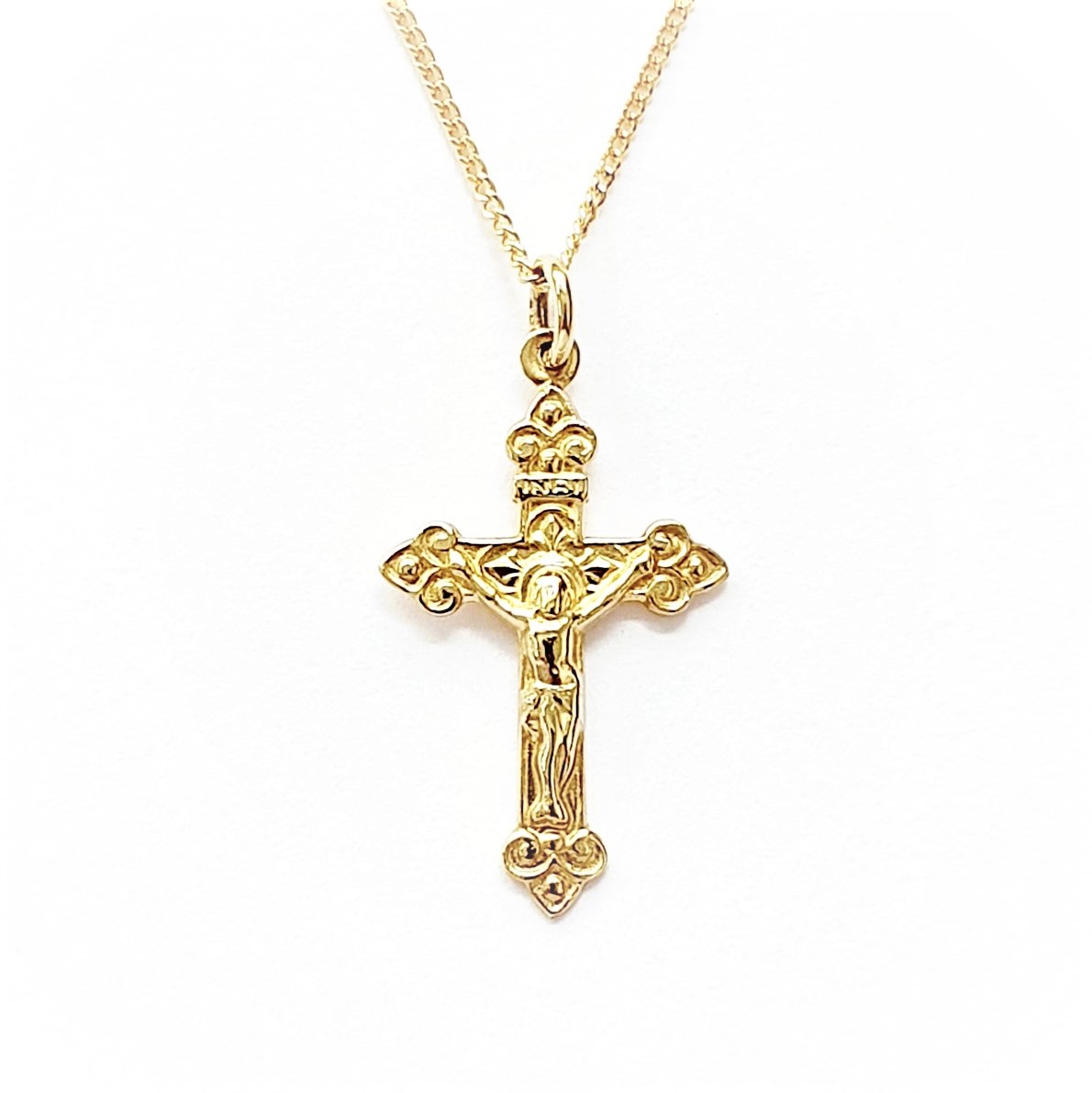 City of London Jewellers present this classic 9ct gold crucifix pendant and chain necklace.