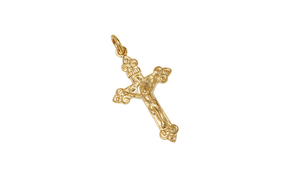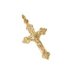 This beautiful trefoil crucifix pendant is intricately detailed in 9ct yellow gold.