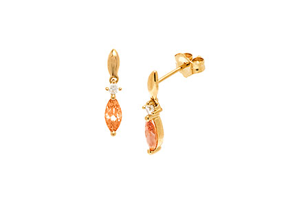 Delicate and stylish, these beautiful 9ct yellow gold stud earrings are set with one marquise shape, pale orange/yellow/light brown cubic zirconia, with a single round white cubic zirconia to the top of each earring. This gives them a smart and sophisticated sparkle, sure to compliment any outfit.