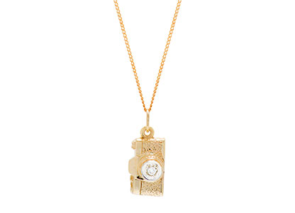 They say a diamond is forever, this lovely heavy camera pendant set with a round brilliant cut diamond to the lens is defiantly made to last, crafted in heavy 9ct gold for all you budding Annie Leibovitz & David Baileys out there gazing at the world through a camera lens. So stay focused and click on the button to purchase your loved one this beautiful camera and see what develops.