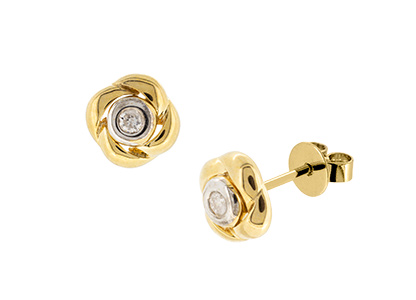 Add a touch of stylish sophistication to your look with these smart diamond stud earrings. A single diamond wrapped in a knot-like appearance and crafted in 9ct yellow gold with a highly polished finish, an interesting and eye-catching design that fits quite close to the earlobe, making them ideal for both the office and perfect with your favourite evening attire.