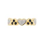 This unusual heart to heart eternity ring, consists of six heart shape sections, each set with alternating three diamonds and three blue sapphires. This stylish design creates a dramatic effect that is both romantic and eye-catching. An ideal gift for the one you love.