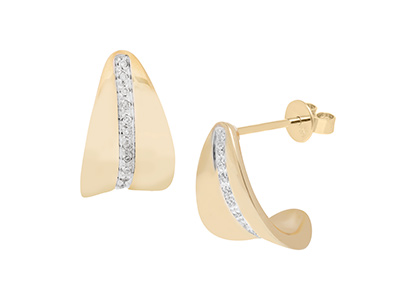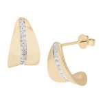 These gorgeous tapered concave earrings need to be worn to show off the shear elegance of the way they hug the earlobe. A solid highly polished contemporary stud earring set with a single row of round white sparkling diamonds to the centre of each earring.