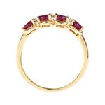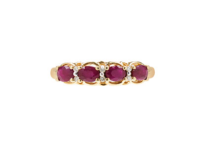 This beautiful ruby ring is set with four oval red rubies and six small round diamonds, two between each ruby, creating a lovely contrast of sparkle and colour.
