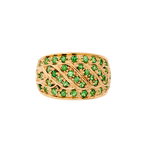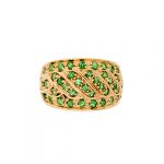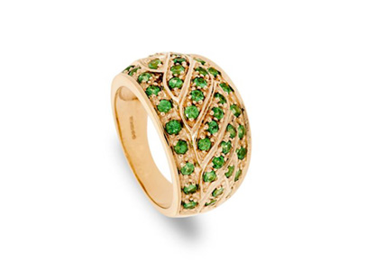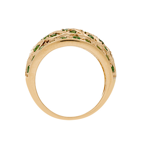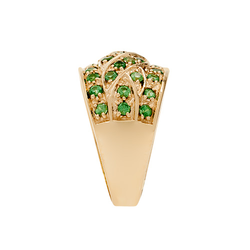 This gorgeous ornate ring, is set with forty-two rich green chrome diopside stones. An unusual dress ring for the lady that likes something a little different, a ring that will make you stand out from the crowd and is certain to win you plenty of compliments.
