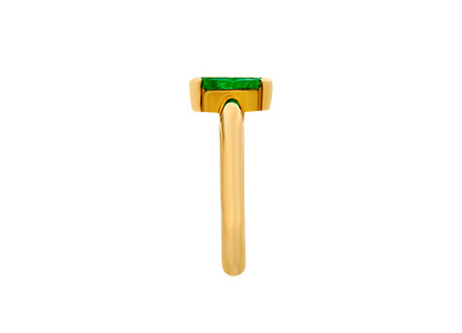 This gorgeous, 9ct yellow gold contemporary design emerald ring, has an elegance that makes it exceptional, set with a single, marquise shape emerald.
