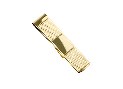 Then, crafted in radiant yellow gold, this 57mm x 13mm clip features an elegant engine-turned pattern with a polished centre—ideal for engraving a name, monogram, or personal message.