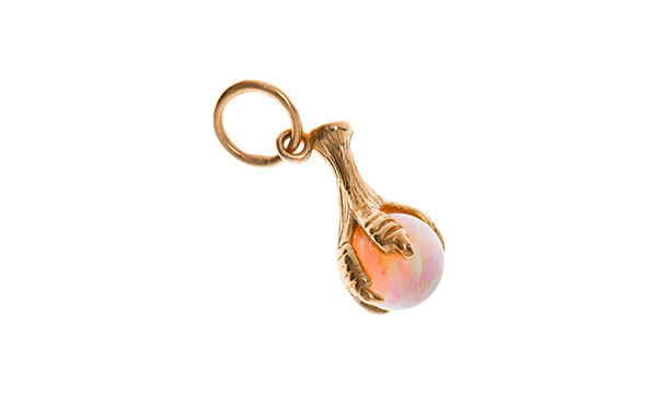 An iconic 9ct yellow gold Eagle claw charm will add a pleasing splash of color to your bracelet. Set with a beautiful and unusual multi coloured, highly polished oplex ball, looks just like real opal.
