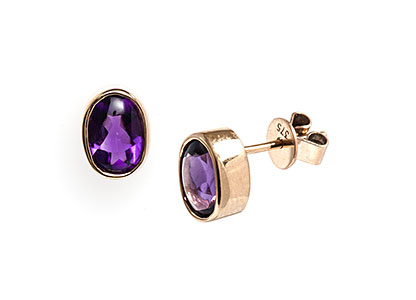 These gorgeous rich purple amethysts, are set into a classic 9ct yellow gold rub over setting and have a smooth and tactile feel.