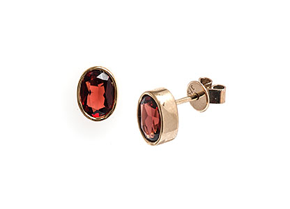These gorgeous rich blood red Mozambique garnet stud earrings, are set into a classic 9ct yellow gold rub over setting and have a smooth and tactile feel.