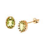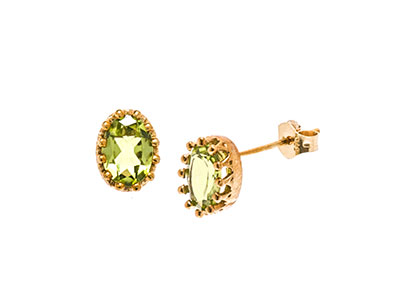 A beautiful eye catching design that is sure to get admiring glances. These beautiful peridot are mounted in 9ct yellow gold royal crown settings, which have twelve claws on each earring giving an ornate style that compliments the vibrant apple/olive green of the peridot. Inspired by the designs of the Victorian era these earrings will make a great feature to your jewellery collection.