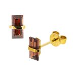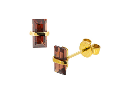Simply beautiful, these rectangular baguette shaped rich red Mozambique garnet stud earrings, create a look that is elegant and graceful. Each stone is wrapped with a single band of yellow gold, giving a dainty feminine look.