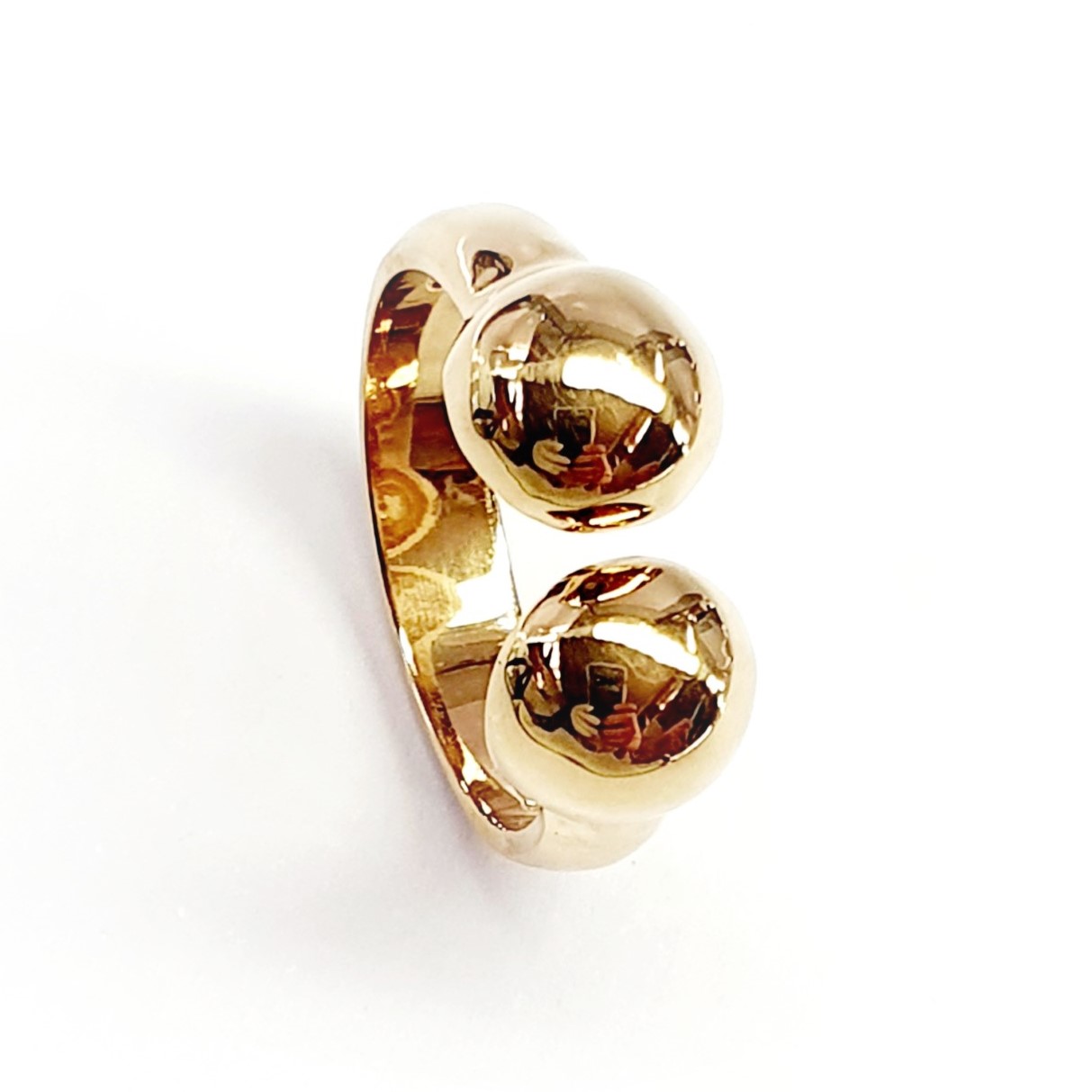 9ct Yellow Gold Ring With two Gold balls ROO131. Also known as a Gold Bead Torque Ring.