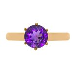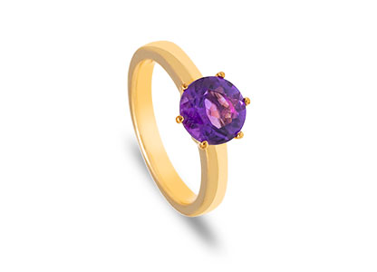 The perfect, vibrant, regal tones of this rich purple amethyst shimmers in the elegant simplicity of this classic 9ct yellow gold six claw set ring, from the Bonita jewels collection. A beautiful design that is certain to win you plenty of compliments