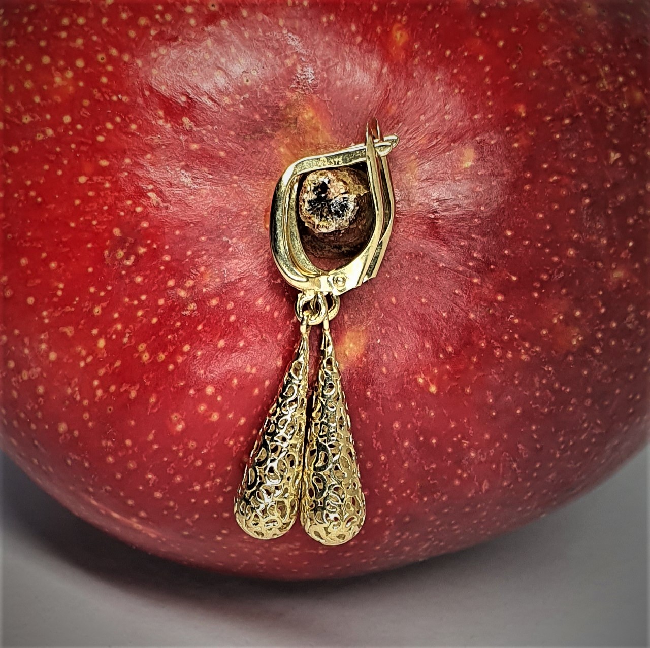 Compelling and luxurious, these delightful 3D bomb drop earrings are intricately pierced all the way around, with an unusual abstract scroll pattern, crafted in polished 9ct yellow gold. A must-have addition to any jewellery collection that will transform both your working and weekend looks, making sure you look your best whatever time of day or night.