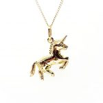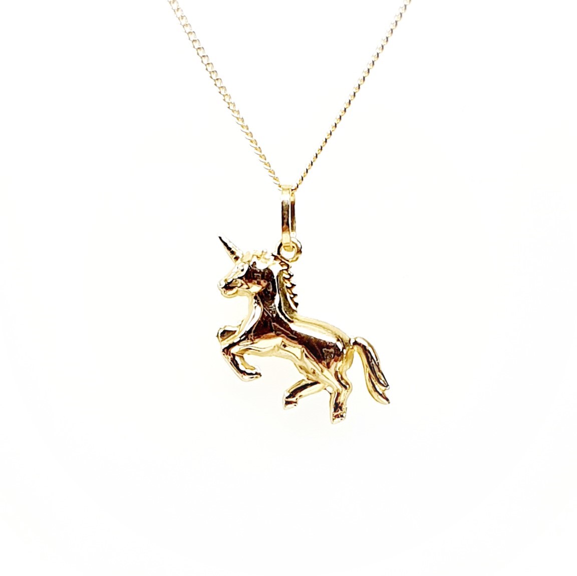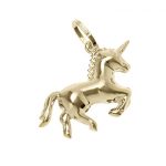 This cute little hollow unicorn pendant, is made in 9ct yellow gold and is said by some to bring good luck.