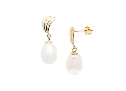 The gorgeous curves of these highly polished 9ct yellow gold shell design drop earrings, are perfectly accentuated with the natural elegance and beauty of the two 9mm x 8mm smooth white cultured pearls.