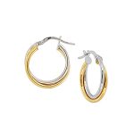 Delightful and adorable, these two colour hoop earrings are perfect for everyday style. Featuring an eye-catching combination of both white and yellow gold in a modern double hoop design. Perfect for adding a new dimension to your look, you’ll feel like the bell of the ball day or night.