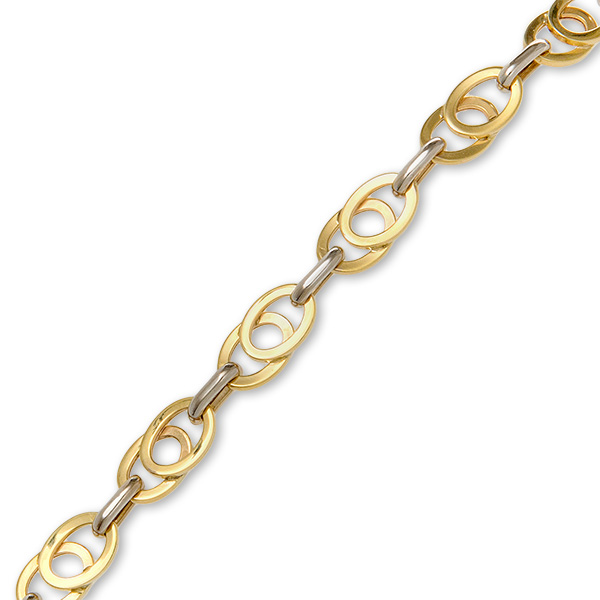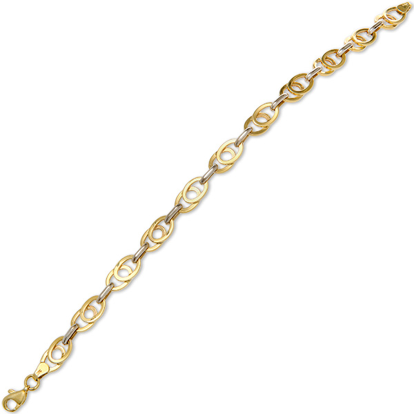 This delightful bracelet features a gorgeous design of eleven oval yellow gold links overlapping contrasting yellow gold links.