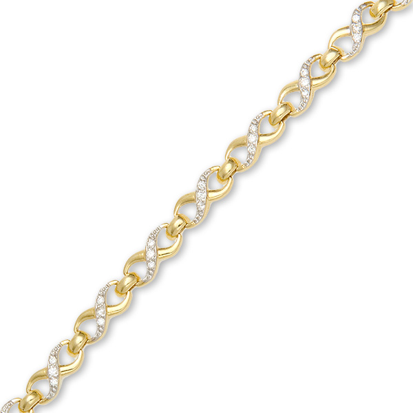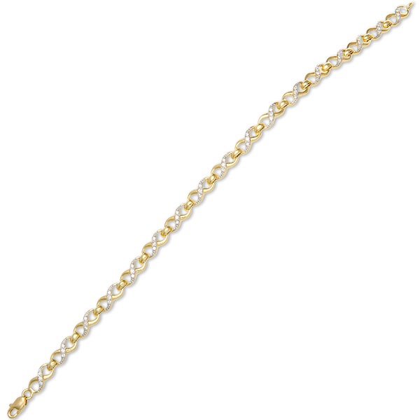 A lovely feminine bracelet with seventeen figure of eight or infinity shape links, each set with three round sparkling cubic zirconia’s.