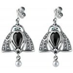A truly stunning design these Art Nouveau stylized Egyptian scarab earrings are set with real heart shaped onyx centre’s, encircled with encrusted real marcasite stones to the wings, and the eyes are set with real emeralds, finished off with a dangling real cultured pearl drop. these earrings would look at home with absolutely any style of attire from every day casual wear to very a smart dress or jacket, which in my opinion, is what makes this design so special.