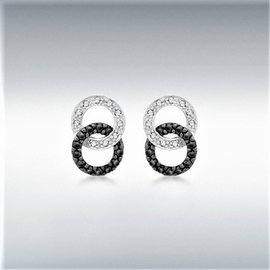 Black and white unite with these stunning black and white double circle diamond stud earrings, crafted in 9ct white gold with the dark sparkle of the black diamond settings, which are coated in precious black rhodium to bring out the detailed perfection. A stunning design that is sure to impress, adding a great finishing touch of elegance to your look.