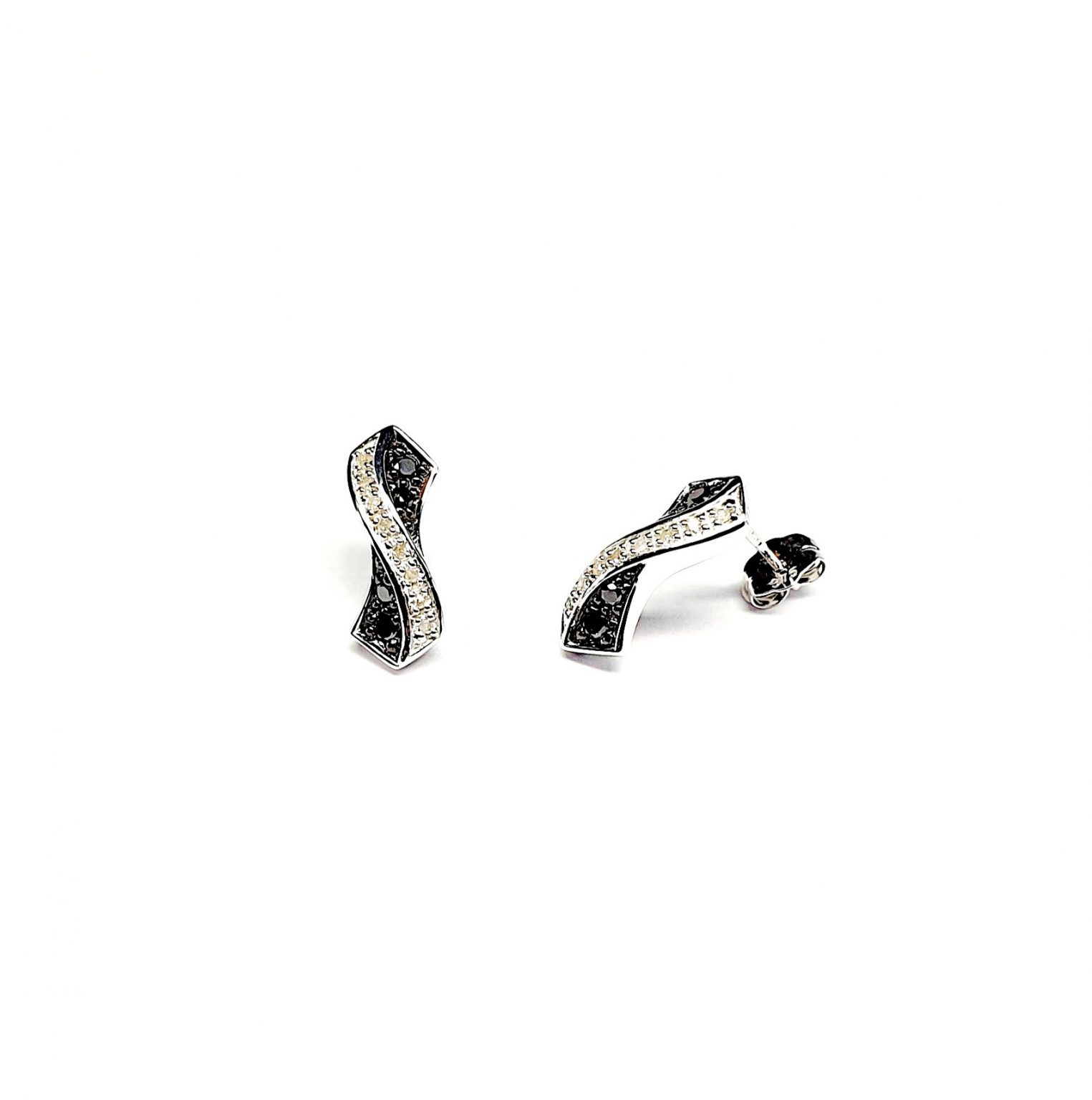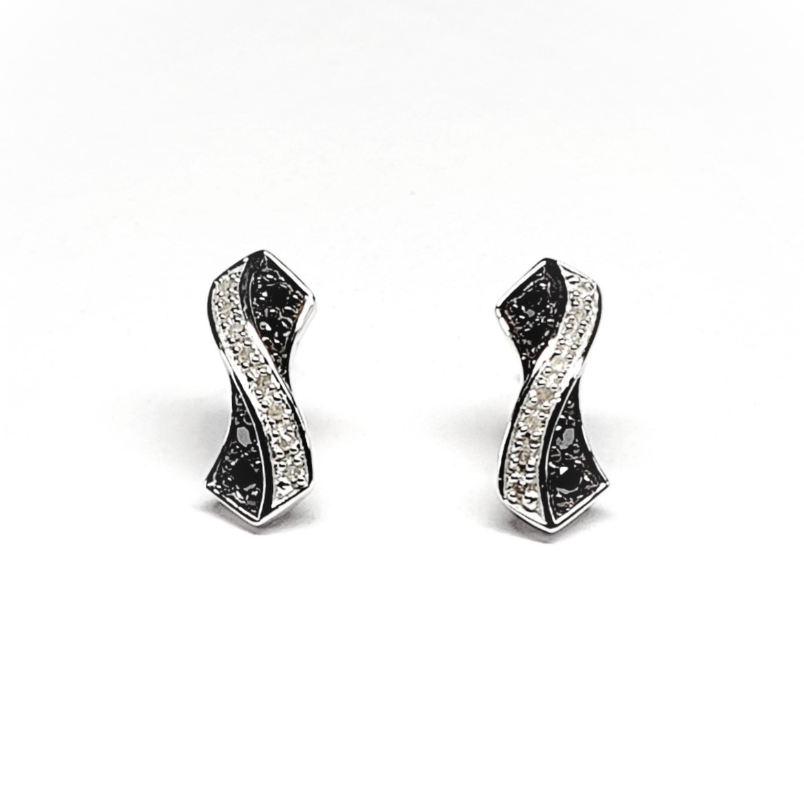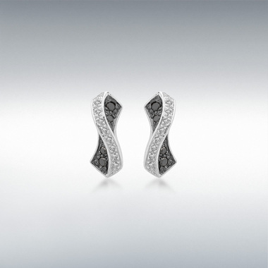 These elegant luxurious 9ct white gold stud earrings catch the eye with the unrivalled contrast of encrusted black and white diamonds, the dark sparkle of the black diamond settings are coated in precious black rhodium to bring out detailed perfection. A stunning design that is sure to impress, adding a great finishing touch of elegance to your look.