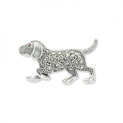 A great gift for any dog lover, this cute little dog brooch is encrusted with real marcasite stones and a single red garnet colour eye and is sure to compliment any outfit.