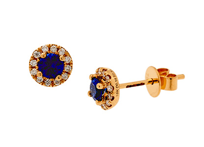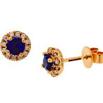 City of London Jewellers present these gorgeous 18ct Yellow Gold Blue Sapphire & Diamond Round Cluster Stud Earrings ESA00430.