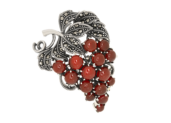 City of London Jewellers Present the East Sussex Bunch of Grapes Brooch with Red Agate and Marcasite stones.