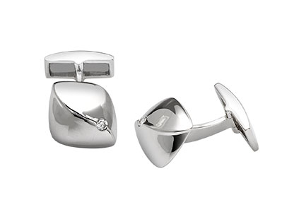 Made in 925 real silver with highly polished anti tarnish rhodium finish and set with a single sparkling white cubic zirconia to each cufflink.