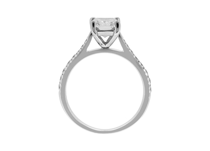 (Something special to note) the tapper to the base of the diamond setting, will allow most wedding rings to fit very close together thus avoiding a big gap between engagement ring and wedding ring.
