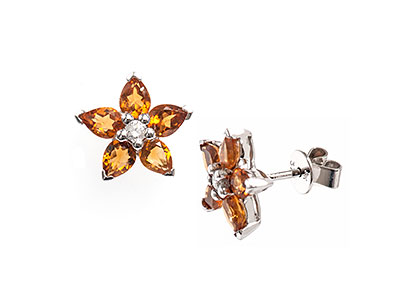 City of London Jewellers present the Ixworth 9ct white gold Citrine and diamond flower Stud Earrings.